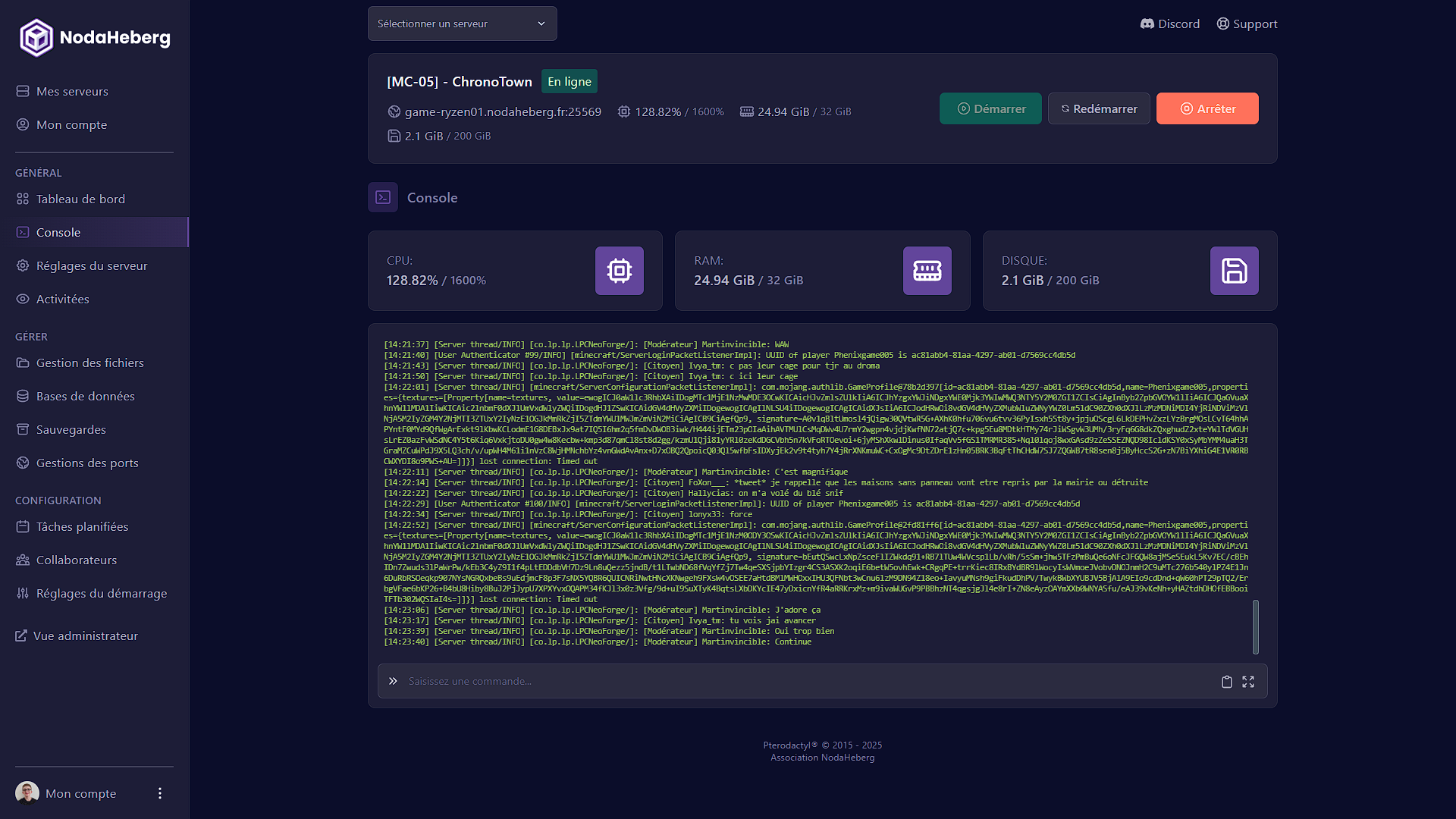 Notre panel de gestion est intuitif et accessible, offrant une interface claire et complète pour administrer facilement vos serveurs. Toutes les informations essentielles sont centralisées, permettant une gestion fluide et efficace.